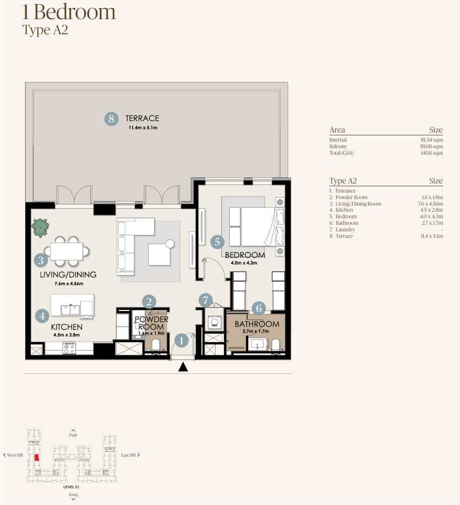 Located on Hudayriyat Island between Nawayef hills, the project is just 20 minutes from Abu Dhabi city center and 35 minutes from Zayed International Airport. Adjacent to Nawayef Souq, Circuit X Adventure Park, parks, beach, and cultural zones.