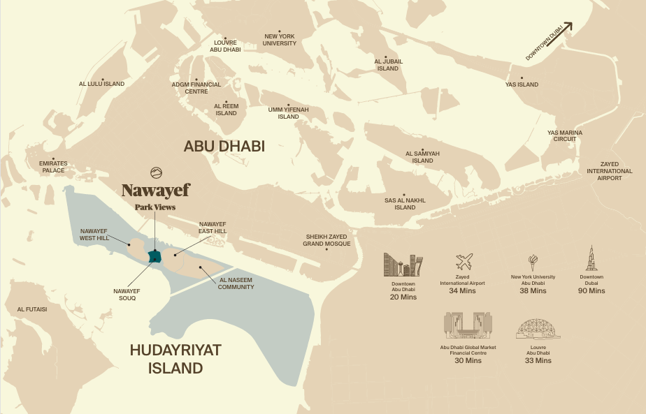 Nawayef Park Views is located on Hudayriyat Island in Abu Dhabi, nestled between the scenic Nawayef hills and adjacent to Nawayef Souq.