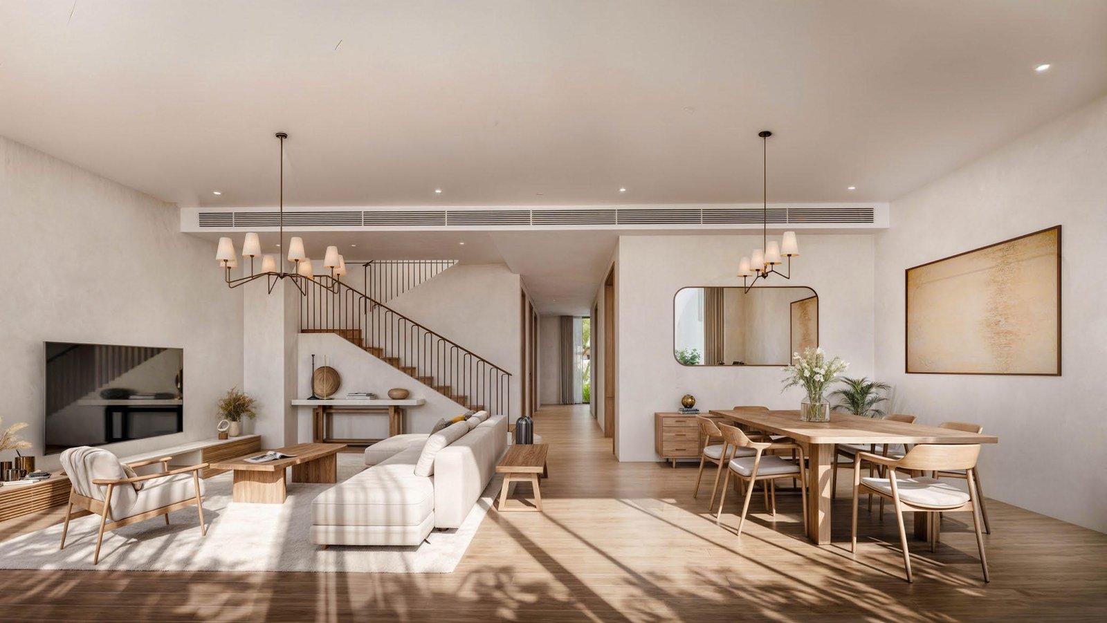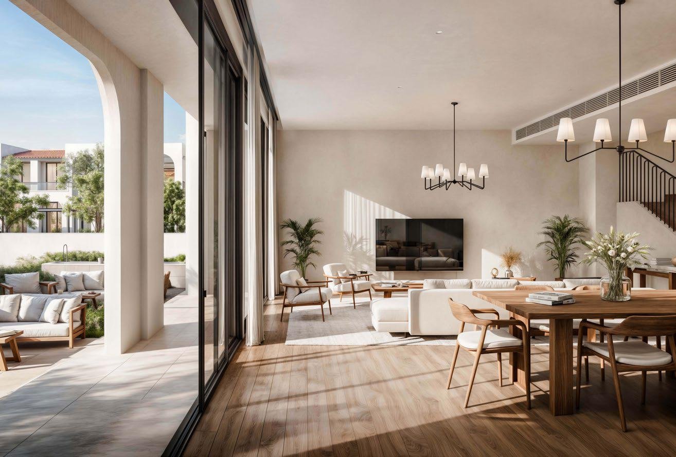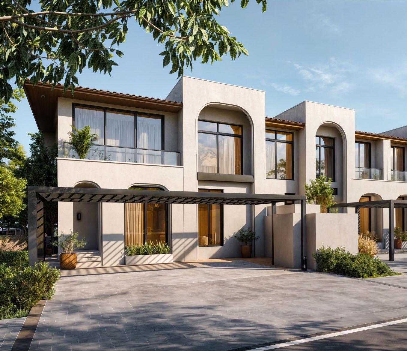 Homes in Nawayef Village are thoughtfully designed with modern aesthetics and functional layouts. Featuring clean architectural lines, large windows, and open-plan interiors, each residence maximizes natural light and space. Inspired by Mediterranean and Tuscan elements, the facades include warm earthy tones, textured finishes, and shaded outdoor areas. Private gardens, rooftop terraces, and flexible living spaces create the perfect environment for modern island living.